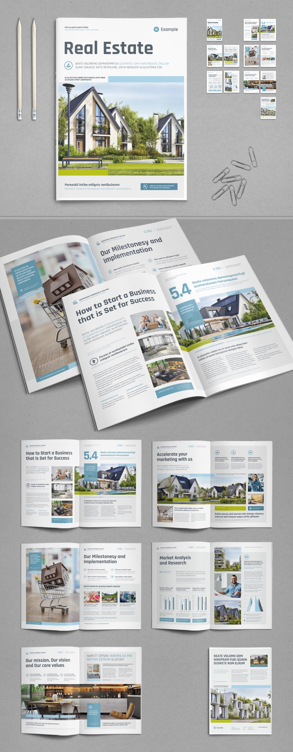 InDesign-Vorlage „Business Brochure Template with Light Blue Elements for Real Estate.zip“
